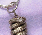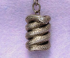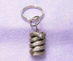 古来より,縁起物として尊ばれる{蛇}をモチーフにした、いぶし銀仕上げの銀製のキーホルダー。