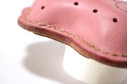 厚手の革を使用していますが、編み針の先が当たる部分は傷みやすいため中でさらに補強してあります。