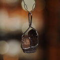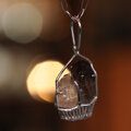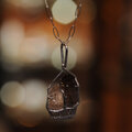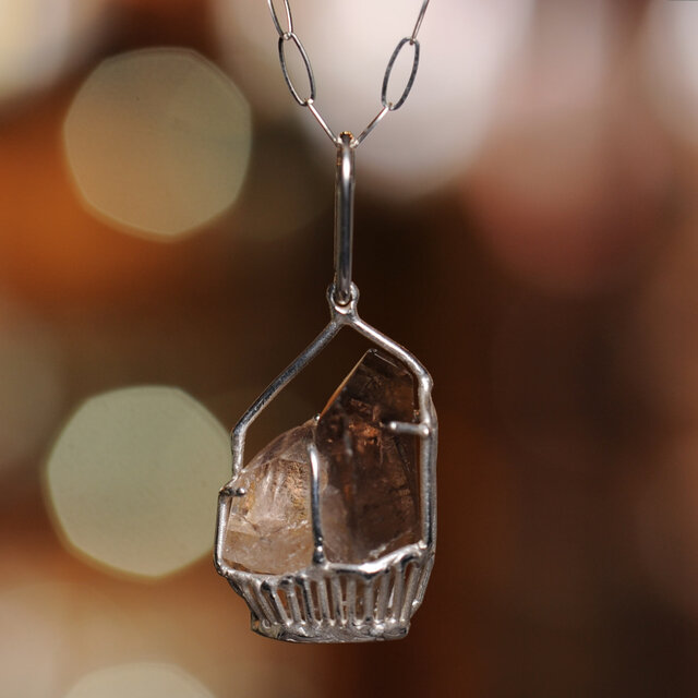 「スモーキークォーツとトパーズの双晶」を使ったペンダントになります。