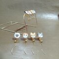 【特別価格】ピアス 白&黒仲良しネコ 木彫り 両耳 黒柿(クロガキ) 各1点ものとてもいい風合い!