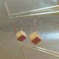 【特別価格】ピアス 白&黒仲良しネコ 木彫り 両耳 黒柿(クロガキ) 各1点ものとてもいい風合い!