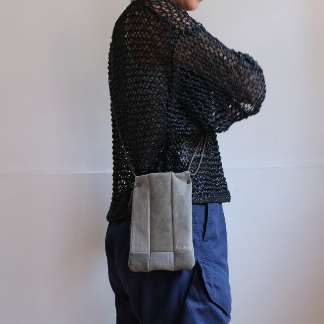 【国産ジビエ鹿革】ツギシカ・スマートフォンポシェット【雪曇/極寒の大地・北海道、薄日が差す雪景色のライトグレー】