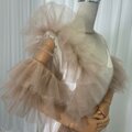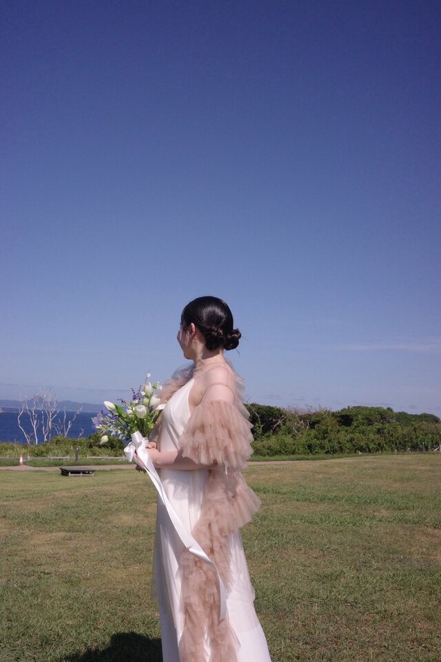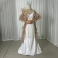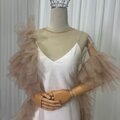 実例写真!ウエディングドレス キャミソール+トップス ラッフルフリル ソフトチュール シャンパン色 デザイン感 前撮り