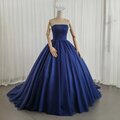 カラードレス ネイビー ベアトップ プリンセスライン チュールスカート 編み上げ 披露宴
