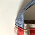 トリコロールカラーが 涼やかで 編目が 細やかで 丁寧に 編まれている。 肌触りも 柔らかで くったりしているので 畳んで 大きなバックに 入れて 持ち歩けそう。