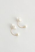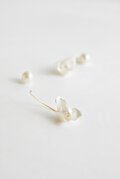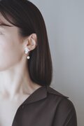 フリージアの花をモチーフにした、広がる2枚の花びらが特徴のピアス。パールがキャッチになっているので、ピアスホールの前後どちらから着けるかによって見せ方を変えられる2wayのデザインです。クレイで花びら一枚ずつ手づくりした花は、パールのような輝きのメタリックホワイトでコーティングしています。