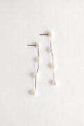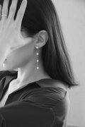 流れるチェーンに4つの淡水パールをあしらった耳飾り。細身のチェーンはしなやかで、なめらかな輝きが美しく、ころんとしたパールは可愛らしさもありつつ、可憐なイメージを与えてくれます。洗練されたシンプルなデザインは色々なシーンで使いやすく、存在感も抜群です。