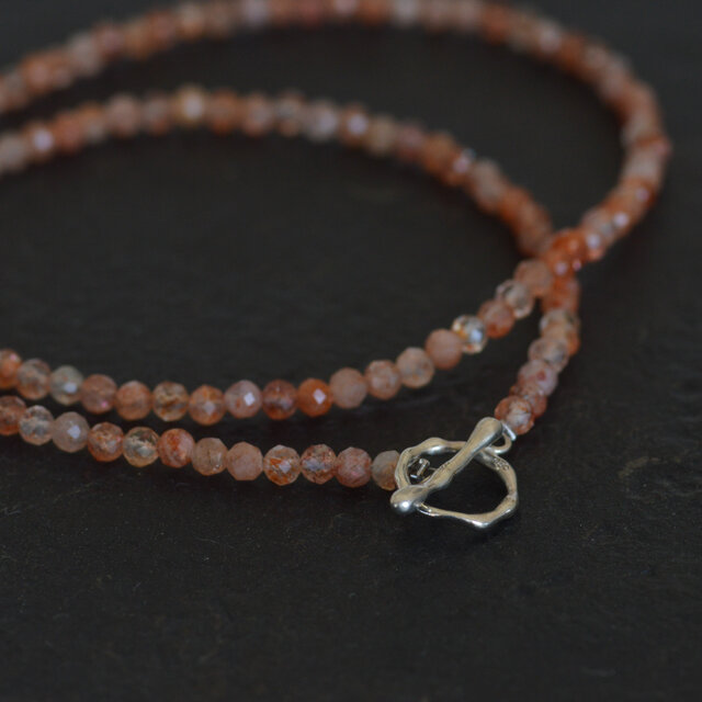 オレンジ色の内包物がきれいなサンストーン、カットが反射してキラキラ輝きます。