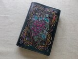 表装には、刻印を排列したのちに拭き染めで自家染色を施しています。