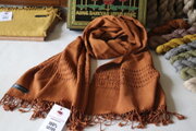ミャンマー・インレー湖で採れる蓮の茎を折り、蜘蛛の糸のような繊維を引き出して縒り合わせ丁寧にレース編みし上げとても珍しいストールです。