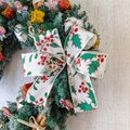 ヒイラギ模様のリボンを結び、お子様にも喜ばれる可愛いクリスマスリースに仕上げました。