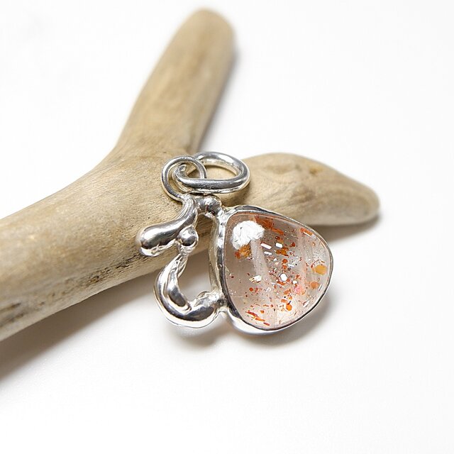 流れるようなラインのシルバーを添え、有機的なフォルムの中に自然のリズムを感じさせるペンダントに仕上げました。