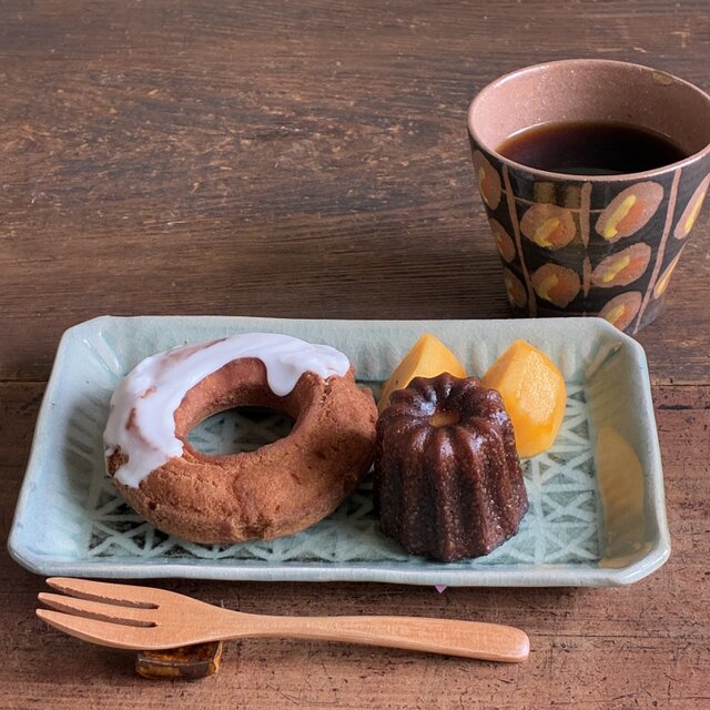 ドーナツ1つ、クロワッサン1つ、+αが置ける、ほどよい大きさの長方皿です。