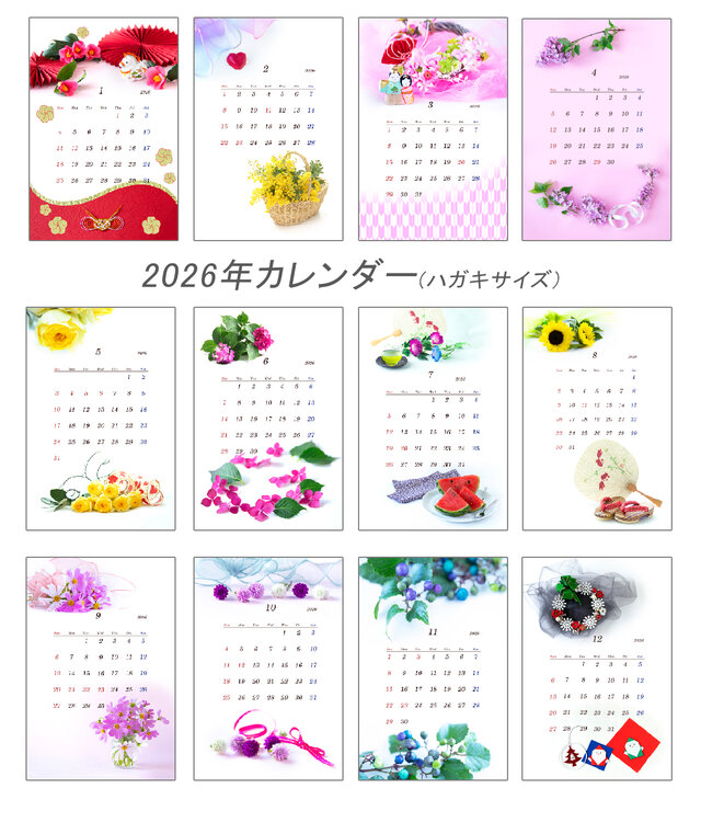 #Hana-Photo #カレンダー #ポストカード #縦 #2026 #2026年 #2026年度版 #写真 #花 #お花 #クリスマス #椿 #ミモザ #ライラック #朝顔 #向日葵 #こすもす #千日紅 #バラ #コスモス #干支 #午 #ヒマワリ #西瓜 #サンタクロース #おひな様 #赤 #ピンク #黄色 #緑色 #ピンク #カラフル #フラワーアレンジメント #リボン #ドライフラワー