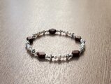 Material: vintage wooden beads, freshwater pearl beads, Silver Filled beads, stretch cord