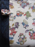 正絹の可愛い子供の柄の縮緬の着物と色大島紬の着物を組み合わせて作りました。