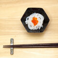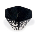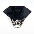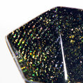 漆で固めた鉢の表面は、中の虹色に対比させるために銀箔を散らしました。