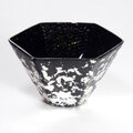 六角錐のガラスの表面に細い溝が彫り込まれた小鉢です。