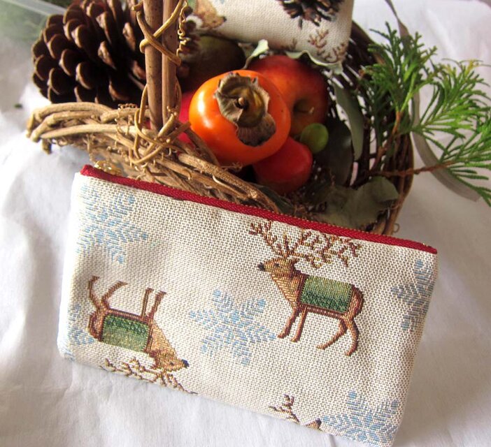 2025クリスマス オランダ生地(MS)トナカイのポーチ 小銭入れ 鍵入れ コスメ入れ 薬入れ