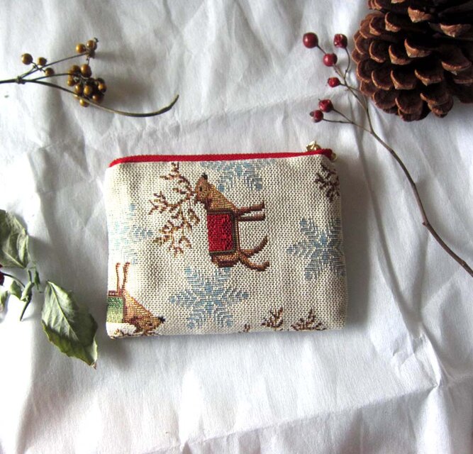 2025クリスマス オランダ生地 (S)トナカイのポーチ 小銭入れ 鍵入れ コスメ入れ 薬入れのコピー