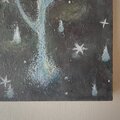 木製パネルにテクスチャーをつけ、アクリル絵の具やオイルパステル等を使用しています。
