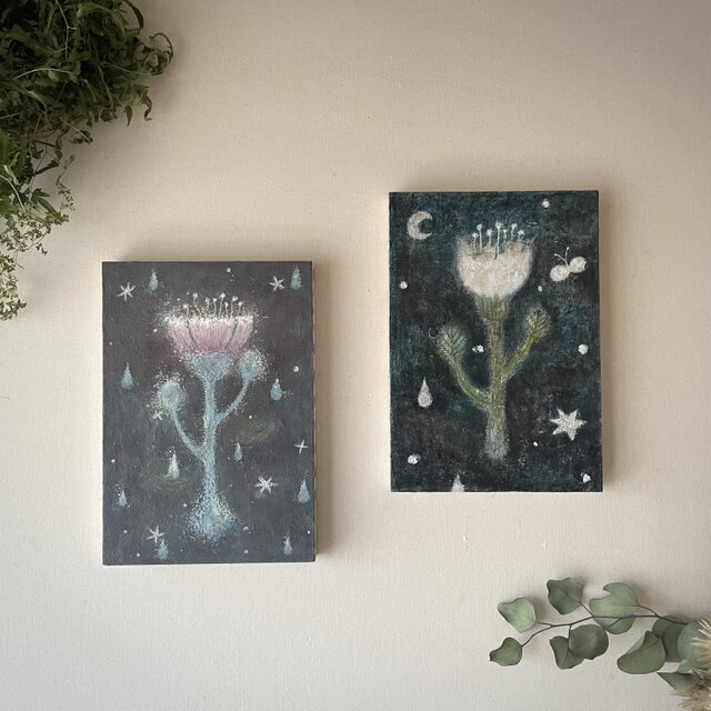 真夜中のほの暗い中、匂いひらく花をイメージして描きました。