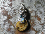 素材:アンモナイト、シルバー枠ラブラドライト、カレンシルバー、ニッケル、ラブラドライト、ムーンストーン、ハーキマーダイヤモンド、ガラス