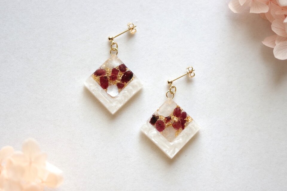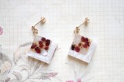 レジンアート スクエアピアス〈冥界の石榴の実〉