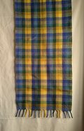 たて糸に青色、渋めの青色、緑色、辛子色、黄色