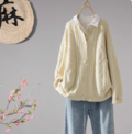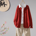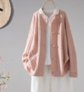 【受注】綿.編み ニットカーディガン ショート 無地 ラウンドネック ゆったり 大人カジュアル 可愛いセーター 秋冬 トップス