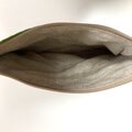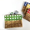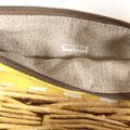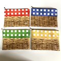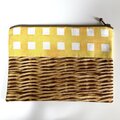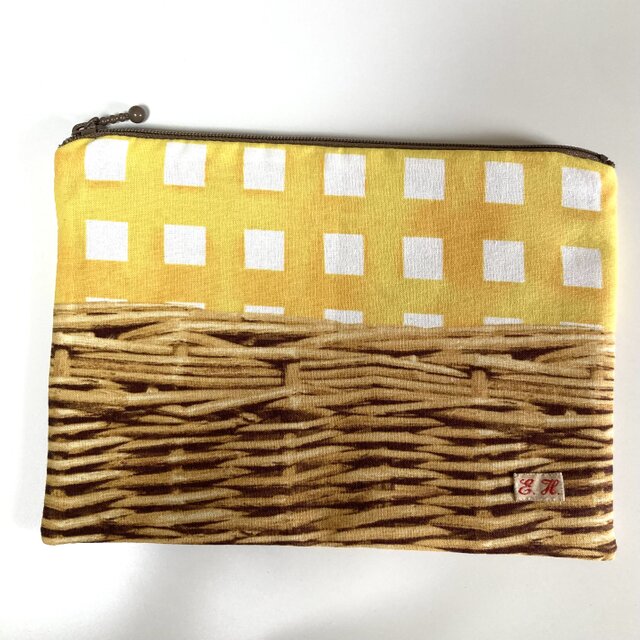 バスケット柄コットン地のポーチです。内袋はリネン、アンティークのイニシャルテープが付いています。