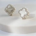 柔らかな光沢が魅力の白蝶貝(マザーオブパール)を主役にした、ビーズ刺繍の耳飾り。