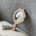 天然木を手作業で磨き上げ、中央には小さな鏡とラインストーンを挟み込んでいます。