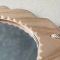 天然木を手作業で磨き上げ、中央には小さな鏡とラインストーンを挟み込んでいます。