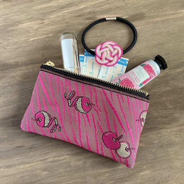 愛らしいりんごの柄の畳縁で作ったミニポーチです。