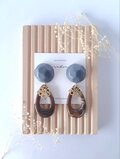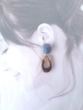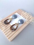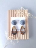人気の大ぶりトップに、ゴールドとマーブルブラウンの涙型モチーフを組み合わせた、どこかレトロなアクセサリー。