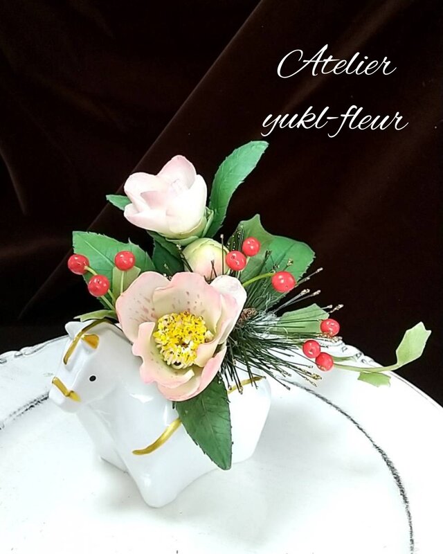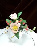 ☆クレイフラワー作品(バスケットいっぱいの夏)☆本日、自然な感じでイメージ通りの愛らしいバラのリースが届きました、さっそく壁に飾らしていただきます。 T.S