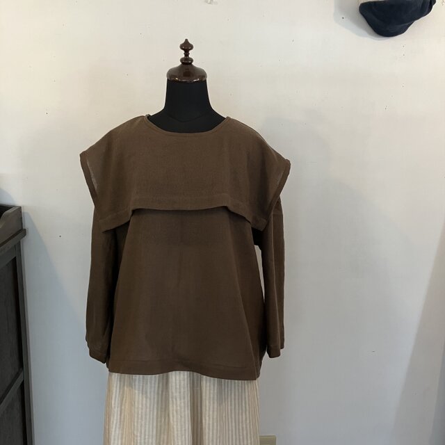 こちらは柔らかいコットンウール素材のトップスです。薄地で少し透け感のある生地を使用しています。