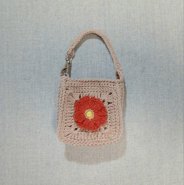 手作りの一点もの、内布2枚仕立てでマグネットホック付きのミニバッグチャームです。