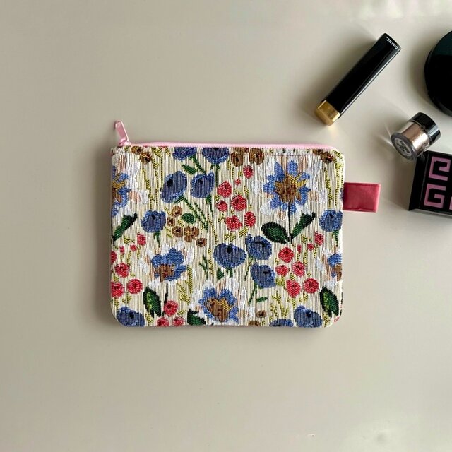 フラットポーチ/華やかゴブラン織/通帳やカード・母子手帳・お薬手帳もすっきり収納/かさばらない通帳ケース・プレゼントにもおすすめ