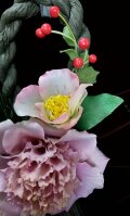☆クレイフラワー作品(バスケットいっぱいの夏)☆本日、自然な感じでイメージ通りの愛らしいバラのリースが届きました、さっそく壁に飾らしていただきます。 T.S