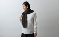 空気を含むように巻いても、リネンニットらしいドレープを出せるように掛けても、日除けや冷暖房避けに広げて肩から羽織るのも。畳んだり丸めたりコンパクトにまとまり、リネンニットはシワにならないので、旅行中や、バッグに入れて持ち運びも。