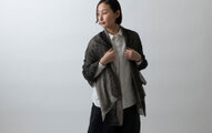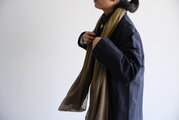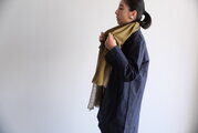 リネンニットストールの新型です。編み方が変わり、以前の型に比べてボリューム感が少し増えました。空気を含むように巻いても、リネンニットらしいドレープを出せるよう…