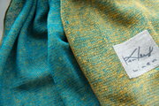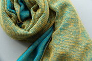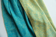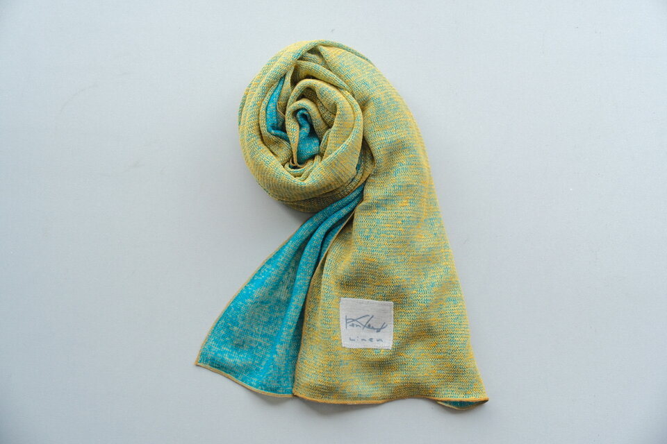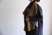 リネンニットストールの新型です。編み方が変わり、表裏で色が異なるリバーシブル仕様で、以前の型に比べてボリューム感が少し増えました。