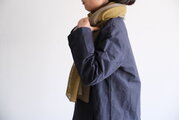 リネンニットストールの新型です。編み方が変わり、以前の型に比べてボリューム感が少し増えました。空気を含むように巻いても、リネンニットらしいドレープを出せるよう…