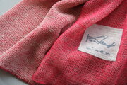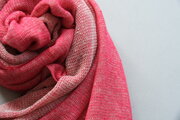 リネンニットストールの新型です。編み方が変わり、表裏で色が異なるリバーシブル仕様で、以前の型に比べてボリューム感が少し増えました。