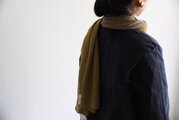 リネンニットストールの新型です。編み方が変わり、以前の型に比べてボリューム感が少し増えました。空気を含むように巻いても、リネンニットらしいドレープを出せるよう…