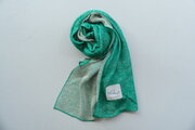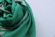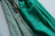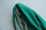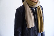 リネンニットストールの新型です。編み方が変わり、表裏で色が異なるリバーシブル仕様で、以前の型に比べてボリューム感が少し増えました。