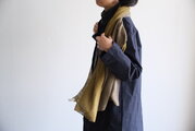 リネンニットストールの新型です。編み方が変わり、以前の型に比べてボリューム感が少し増えました。空気を含むように巻いても、リネンニットらしいドレープを出せるよう…