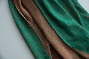 リネンニットストールの新型です。編み方が変わり、表裏で色が異なるリバーシブル仕様で、以前の型に比べてボリューム感が少し増えました。